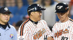 [OSEN=대전, 민경훈 기자] 24일 오후 대전 한밭야구장에서 열린 '2014 한국야쿠르트 세븐 프로야구' 한화 이글스와 NC 다이노스의 경기, 3회말 2사 주자 1,2루 한화 대타 조인성이 우익수 앞 역전 1타점 적시타를 날린 후 1루에서 환하
