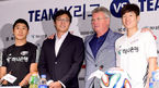 [OSEN=서울월드컵경기장, 최규한 기자] 24일 오후 서울월드컵경기장에서 '하나은행 K리그 올스타 with 팀 박지성' 기자회견 및 훈련 공개가 진행됐다. 기자회견에 참석한 박지성과 히딩크 감독이 취재진의 질문에 답하고 있다. 오