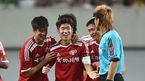 [OSEN=서울월드컵경기장, 이대선 기자] 25일 오후 서울월드컵경기장에서 열린 '하나은행 K리그 올스타 with 팀 박지성' 올스타전에서 박지성이 정대세의 골을 어시스트하고 김재성과 이야기를 나누고있다 국내 팬들을 위해 선수로