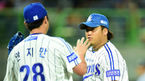 [OSEN=포항, 민경훈 기자] 25일 오후 포항 야구장에서 열린 '2014 한국야쿠르트 세븐 프로야구' 삼성 라이온즈와 NC 다이노스의 경기, 7회말 선두타자 삼성 나바로가 타석에서 NC 원종현의 위협구에 흥분하자 김재걸 코치가 진정시