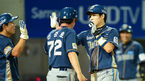 [OSEN=포항, 민경훈 기자] 25일 오후 포항 야구장에서 열린 '2014 한국야쿠르트 세븐 프로야구' 삼성 라이온즈와 NC 다이노스의 경기,6회초 2사 주자 1,2루 NC 박민우가 좌월 동점 스리런 홈런을 날린 후 3루에서 이광길 코치와 하이파