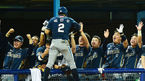[OSEN=포항, 민경훈 기자] 25일 오후 포항 야구장에서 열린 '2014 한국야쿠르트 세븐 프로야구' 삼성 라이온즈와 NC 다이노스의 경기,6회초 2사 주자 1,2루 NC 박민우가 좌월 동점 스리런 홈런을 날린 후 덕아웃에서 동료들과 기쁨을