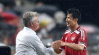 [OSEN=서울월드컵경기장, 이대선 기자] 25일 오후 서울월드컵경기장에서 열린 '하나은행 K리그 올스타 with 팀 박지성' 올스타전에서 정조국이 골을 넣고 히딩크 감독에게 정중하게 인사를 하고 있다 국내 팬들을 위해 선수로서