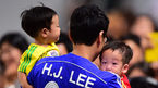 [OSEN=서울월드컵경기장, 박준형 기자] 25일 오후 서울월드컵경기장에서 열린 '하나은행 K리그 올스타 with 팀 박지성' 올스타전에서 이휘재가 쌍둥이를 데리고 관전하고 있다. 국내 팬들을 위해 선수로서 마지막 축구화를 신는