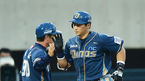 [OSEN=포항, 민경훈 기자] 25일 오후 포항 야구장에서 열린 '2014 한국야쿠르트 세븐 프로야구' 삼성 라이온즈와 NC 다이노스의 경기, 3회초 2사 주자 1루 NC 나성범이 우월 동점 투런홈런을 날린 후 덕아웃에서 김경문 감독과 하이파