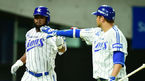 [OSEN=포항, 민경훈 기자] 26일 오후 포항 야구장에서 열린 '2014 한국야쿠르트 세븐 프로야구' 삼성 라이온즈와 NC 다이노스의 경기, 8회말 2사 주자 만루 삼성 김헌곤이 좌익수 앞 2타점 적시타대 홈을 밟은 이승엽이 덕아웃에서 동