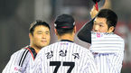 [OSEN=잠실, 김경섭 기자] 26일 오후 서울 잠실야구장에서 열린 '2014 한국야쿠르트 세븐 프로야구' LG 트윈스와 롯데 자이언츠의 경기, 7회초 1사 주자 1루, LG 유원상이 롯데 정훈에게 안타를 내주자 강상수 코치가 마운드를 방문하