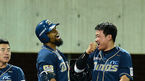 [OSEN=포항, 민경훈 기자] 26일 오후 포항 야구장에서 열린 '2014 한국야쿠르트 세븐 프로야구' 삼성 라이온즈와 NC 다이노스의 경기, 7회초 1사 주자 없는 상황에서 NC 테임즈가 우월 솔로 홈런을 날린 후 덕아웃에서 김태군과 수염