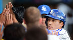 [OSEN=포항, 민경훈 기자] 26일 오후 포항 야구장에서 열린 '2014 한국야쿠르트 세븐 프로야구' 삼성 라이온즈와 NC 다이노스의 경기, 2회말 1사 주자 없는 상황에서 삼성 이승엽이 선취 중월 솔로홈런을 날린 후 덕아웃에서 동료들
