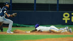 [OSEN=포항, 민경훈 기자] 27일 오후 포항 야구장에서 열린 '2014 한국야쿠르트 세븐 프로야구' 삼성 라이온즈와 NC 다이노스의 경기, 4회말 2사 주자 1루 삼성 이지영의 우익수 앞 안타때 1루 주자 김헌곤이 3루에 몸을 날리며 세이
