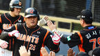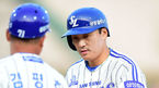 [OSEN=포항, 민경훈 기자] 27일 오후 포항 야구장에서 열린 '2014 한국야쿠르트 세븐 프로야구' 삼성 라이온즈와 NC 다이노스의 경기, 2회말 삼성 선두타자 이승엽이 12년 연속 세자리 안타에 성공한 후 1루에서 김평호 코치와 하이파