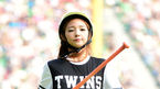 [OSEN=잠실, 지형준 기자] 27일 오후 서울 잠실야구장에서 '2014 한국야쿠르트 세븐 프로야구' LG 트윈스와 롯데 자이언츠의 경기가 열렸다. LG 치어리더 강윤이가 배트걸로 변신, 배트를 들고 그라운드를 나서고 있다. 이날 롯데는