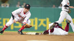 [OSEN=인천, 백승철 기자] 28일 오후 인천 문학구장에서 열린 '2014 한국야쿠르트 세븐 프로야구' SK 와이번스와 넥센 히어로즈의 경기 4회초 1사 1루 이택근 타석, 1루주자 서건창이 도루에 성공하고 있다. SK와 넥센은 지난 25일 우천