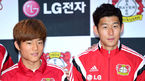 [OSEN=김경섭 기자] 29일 오후 서울 청담동 LG전자베스트샵 강남본점에서 열린 '레버쿠젠 초청 팬 사인회 및 사진행사'에서 축구선수 류승우와 손흥민이 포토타임을 갖고 있다. 이날 행사에는 축구선수 손흥민, 슈테판 키슬링, 베