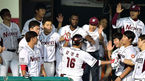 [OSEN=목동, 이대선 기자] 29일 오후 서울 목동야구장에서 '2014 한국야쿠르트 세븐 프로야구' 넥센 히어로즈와 한화 이글스의 경기가 열렸다. 3회말 2사에서 넥센 강정호가 좌월 솔로포를 치고 더그아웃에서 동료들과 환호하고 있