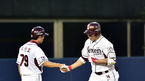 [OSEN=목동, 이대선 기자] 29일 오후 서울 목동야구장에서 '2014 한국야쿠르트 세븐 프로야구' 넥센 히어로즈와 한화 이글스의 경기가 열렸다. 3회말 2사에서 넥센 강정호가 좌월 솔로포를 치고 최만호 코치와 하이파이브를 하고 있