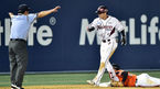 [OSEN=목동, 이대선 기자] 29일 오후 서울 목동야구장에서 '2014 한국야쿠르트 세븐 프로야구' 넥센 히어로즈와 한화 이글스의 경기가 열렸다. 7회말 1사 2,3루에서 넥센 문우람이 2타점 적시 3루타를 날리고 3루에서 세이프 되고 있