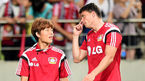 [OSEN=서울월드컵경기장, 지형준 기자] 30일 오후 서울월드컵경기장에서 열린 FC 서울과 바이엘 04 레버쿠젠의 경기, 경기후 레버쿠젠 류승우가 팬들에게 인사를 하며 동료선수와 장난을 치고 있다. 로저 슈미트 감독이 이끄는 바