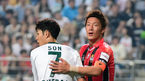 [OSEN=서울월드컵경기장, 백승철 기자] 30일 오후 서울월드컵경기장에서 열린 FC 서울과 바이엘 04 레버쿠젠의 경기 후반 김진규와 손흥민이 서로를 격려하고 있다. 한국투어 참가를 위해 지난 29일 입국한 레버쿠젠 선수들이 이