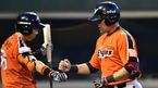 [OSEN=목동, 이대선 기자] 30일 오후 서울 목동야구장에서 '2014 한국야쿠르트 세븐 프로야구' 넥센 히어로즈와 한화 이글스의 경기가 열렸다. 4회초 무사에서 한화 최진행이 우월 솔로 홈런을 날리고 고동진과 하이파이브를 하고