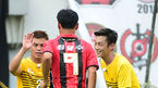 [OSEN=서울월드컵경기장, 백승철 기자] 30일 오후 서울월드컵경기장에서 열린 FC 서울 올드스타와 KBS 예능 프로그램 '우리동네 예체능'팀의 경기 후반 교체되어 들어온 최용수 감독과 이정-윤두준이 하이파이브를 하고 있다. 이
