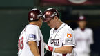 [OSEN=목동, 이대선 기자] 31일 오후 서울 목동야구장에서 '2014 한국야쿠르트 세븐 프로야구' 넥센 히어로즈와 한화 이글스의 경기가 열렸다. 7회말 1사에서 넥센 이성열이 우월 솔로 홈런을 치고 홈에서 심재학 코치와 하이파이브