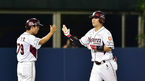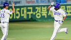 [OSEN=대구, 최규한 기자] 31일 오후 대구구장에서 '2014 한국야쿠르트 세븐 프로야구' 삼성 라이온즈와 LG 트윈스의 경기가 열렸다. 4회말 삼성 공격 1사 2루 상황 나바로가 좌월 투런포를 날리고 그라운드를 돌며 김재걸 코치와 인
