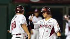 [OSEN=목동, 이대선 기자] 31일 오후 서울 목동야구장에서 '2014 한국야쿠르트 세븐 프로야구' 넥센 히어로즈와 한화 이글스의 경기가 열렸다. 4회말 1사 2루에서 넥센 강정호가 중전 적시타를 치고 심재학 코치와 하이파이브를 하