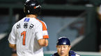 [OSEN=대전, 최규한 기자] 1일 오후 대전구장에서 '2014 한국야쿠르트 세븐 프로야구' 한화 이글스와 두산 베어스의 경기가 열렸다. 6회초 두산 공격 2사 3루 상황 칸투가 역전 1타점 적시 좌전안타를 날리고 1루에 안착해 두산 더그