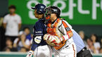 [OSEN=대전, 최규한 기자] 1일 오후 대전구장에서 '2014 한국야쿠르트 세븐 프로야구' 한화 이글스와 두산 베어스의 경기가 열렸다. 4회초 두산 공격 무사 1루 상황 한화 선발 타투스코의 공에 몸을 맞은 양의지가 한화 포수 조인성