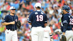 [OSEN=대전, 최규한 기자] 1일 오후 대전구장에서 '2014 한국야쿠르트 세븐 프로야구' 한화 이글스와 두산 베어스의 경기가 열렸다. 3회말 한화 공격 무사 만루 상황 두산 새 외국인 선발투수 마야가 권명철 코치, 통역, 포수 양의