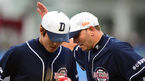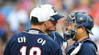 [OSEN=대전, 최규한 기자] 1일 오후 대전구장에서 '2014 한국야쿠르트 세븐 프로야구' 한화 이글스와 두산 베어스의 경기가 열렸다. 2회말 한화 공격 1사 1, 2루 상황 두산 새 외국인 투수 마야와 포수 양의지가 대화를 나누던 중 칸