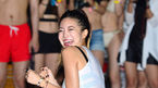 [OSEN=이대선 기자] 1일 오후 서울 광장동 쉐라톤 그랜드 워커힐 비키니 풀 파티에서 팻다운 미녀 NS윤지가 탱크톱과 핫팬츠를 입고 등장, 자신의 트레이드 마크인 복근 비결을 공개했다. NS윤지가 비키니 라인을 통과하고 있다. NS