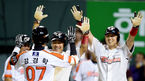 [OSEN=대전, 최규한 기자] 1일 오후 대전구장에서 '2014 한국야쿠르트 세븐 프로야구' 한화 이글스와 두산 베어스의 경기가 열렸다. 8회말 한화 공격 1사 1, 2루 상황 강경학이 우월 역전 스리런포를 날리고 홈을 밟으며 정근우, 김회
