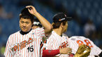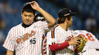 [OSEN=대전, 최규한 기자] 3일 오후 대전구장에서 '2014 한국야쿠르트 세븐 프로야구' 한화 이글스와 두산 베어스의 경기가 열렸다. 8회초 두산 공격 1사 2루 상황 한화 선발 유창식이 마운드를 내려오며 팀 선배 김태균에게 격려를