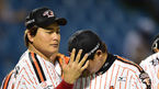 [OSEN=대전, 최규한 기자] 3일 오후 대전구장에서 '2014 한국야쿠르트 세븐 프로야구' 한화 이글스와 두산 베어스의 경기가 열렸다. 8회초 두산 공격이 진행되고 있는 가운데 한화 벤치에 이종범 코치가 조인성에게 격려의 메시지