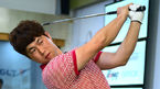 [OSEN=시흥,박준형 기자] 3일 경기도 시흥 화인비전스크린에서 진행된 '2014-2015 삼성증권 mPOP GTOUR Summer Season 3차 대회 결선' 에서 1라운드 8언더파로 단독선두를 기록하고 있는 순범준이 스윙을 하고 있다. 2014-15 삼성증권 mPOP GTOUR