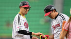 [OSEN=잠실, 이대선 기자] 4일 오후 서울 잠실야구장에서 '2014 한국야쿠르트 세븐 프로야구' LG 트윈스와 넥센 히어로즈의 경기가 열렸다. 2회말 2사 만루에서 LG 황목치승이 중전 적시타를 치고 김민호 코치와 하이파이브를 하고