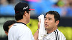[OSEN=잠실, 이대선 기자] 4일 오후 서울 잠실야구장에서 '2014 한국야쿠르트 세븐 프로야구' LG 트윈스와 넥센 히어로즈의 경기가 열렸다. 2회초 무사 1,2루에서 LG 포수 최경철이 땀을 닦고 있다. LG는 넥센과 시즌 11차전에 신정락을