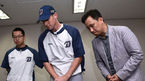 [OSEN=문학,박준형 기자] 4일 오후 문학구장에서 열리는 2014 한국야쿠르트 세븐 프로야구 SK 와이번스와 NC 다이노스의 경기에 앞서 NC 찰리와 배석현 단장이 사과의 인사를 전달하고 있다. 상벌위원회는 지난 3일(일) 문학 경기(NC: