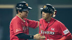 [OSEN=청주, 김영민 기자] 5일 오후 청주 야구장에서 열린 '2014 한국야쿠르트 세븐 프로야구' 한화 이글스와 삼성 라이온즈 경기, 6회말 공수교대때 삼성 나바로와 한화 피에가 인사를 나누고 있다. 삼성은 외국인 투수 릭 밴덴헐