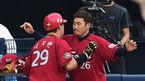 [OSEN=잠실, 백승철 기자] 5일 오후 서울 잠실구장에서 열린 '2014 한국야쿠르트 세븐 프로야구' 두산 베어스와 KIA 타이거즈의 경기 2회초 선두타자 나지완이 솔로 홈런을 치고 서재응과 세리머니를 하고 있다. 최근 4연패로 4위 롯