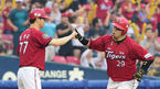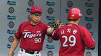 [OSEN=잠실, 백승철 기자] 5일 오후 서울 잠실구장에서 열린 '2014 한국야쿠르트 세븐 프로야구' 두산 베어스와 KIA 타이거즈의 경기 2회초 선두타자 나지완이 솔로 홈런을 치고 선동렬 감독과 하이파이브를 하고 있다. 최근 4연패