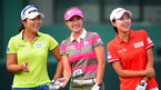 [OSEN=부산,박준형 기자] 5일 오후 부산 사직구장에서 열린 '2014 한국야쿠르트 세븐 프로야구' 롯데 자이언츠와 NC 다이노스의 경기전 니어핀 대결에서 프로골퍼 조윤지와 김하늘, 김효주가 미소 짓고 있다 경기에 앞서 여자 골프