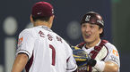 [OSEN=부산,박준형 기자] 5일 오후 부산 사직구장에서 열린 '2014 한국야쿠르트 세븐 프로야구' 롯데 자이언츠와 NC 다이노스의 경기전 니어핀 대결에서 프로골퍼 김하늘과 조윤지가 전준우를 바라보고 있다. 경기에 앞서 여자 골
