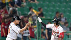 [OSEN=인천, 이대선 기자] 7일 오후 인천 문학야구장에서 '2014 한국야쿠르트 세븐 프로야구' SK 와이번스와 KIA 타이거즈의 경기가 열렸다. 8회말 1사에서 SK 나주환이 중월 솔로 홈런을 치고 홈에서 백재호 코치와 하이파이브를 하