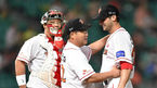 [OSEN=인천, 이대선 기자] 7일 오후 인천 문학야구장에서 '2014 한국야쿠르트 세븐 프로야구' SK 와이번스와 KIA 타이거즈의 경기가 열렸다. 7회초 1사 1루에서 마운드를 방문한 SK 이만수 감독이 밴와트와 이야기를 나누고 있다. KIA는