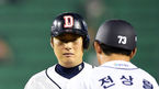 [OSEN=잠실, 민경훈 기자] 7일 오후 잠실 야구장에서 열린 '2014 한국야쿠르트 세븐 프로야구' 두산 베어스와 넥센 히어로즈의 경기, 5회말 2사 주자 1,2루 두산 이원석이 좌익수 앞 1타점 적시타를 날린 후 1루에서 전상렬 코치와 하