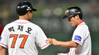 [OSEN=인천, 이대선 기자] 7일 오후 인천 문학야구장에서 '2014 한국야쿠르트 세븐 프로야구' SK 와이번스와 KIA 타이거즈의 경기가 열렸다. 7회말 1사에서 SK 조동화가 내야안타를 치고 백재호 코치와 하이파이브를 하고 있다. KIA는