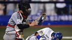 [OSEN=인천, 이대선 기자] 7일 오후 인천 문학야구장에서 '2014 한국야쿠르트 세븐 프로야구' SK 와이번스와 KIA 타이거즈의 경기가 열렸다. 5회말 무사 1,2루 KIA 토마스가 SK 정상호의 번트 타구를 잡아 1루로 송구했지만 공이 빠져